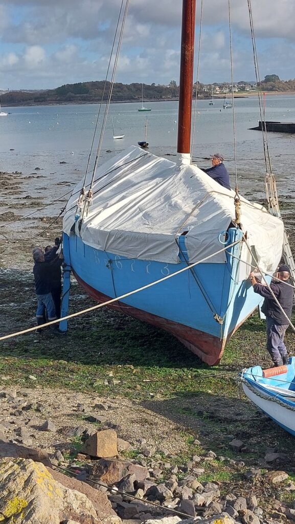L’hivernage du Saint-Guénolé a commencé par une mise au sec afin d’inspecter et entretenir minutieusement sa coque en bois. Le carénage a permis de réaliser un nettoyage complet et d’appliquer une nouvelle couche d’antifouling pour protéger le navire des agressions marines. Son équipage et les spécialistes de la rénovation maritime ont vérifié l’état des bordés, du mât et du gréement, veillant à la préservation de ce véritable témoin du patrimoine breton.